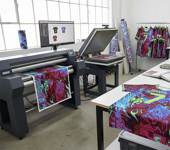 La sublimation repose sur un procédé thermique. Les encres sont d’abord imprimées sur un papier de transfert, puis chauffées à haute température. Sous l’effet de la chaleur, l’encre se transforme en gaz et pénètre directement dans la fibre du textile. Une fois refroidie, l’encre se fixe de manière permanente dans la matière.
