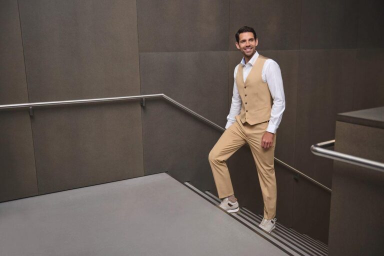 Brook Taverner67% Polyester recyclĂ© / 28% Viscose / 5% LycraBT1914 – Gilet homme George coupe cintrĂ©eDenimSand€ 68,70 HTVAConfigurer