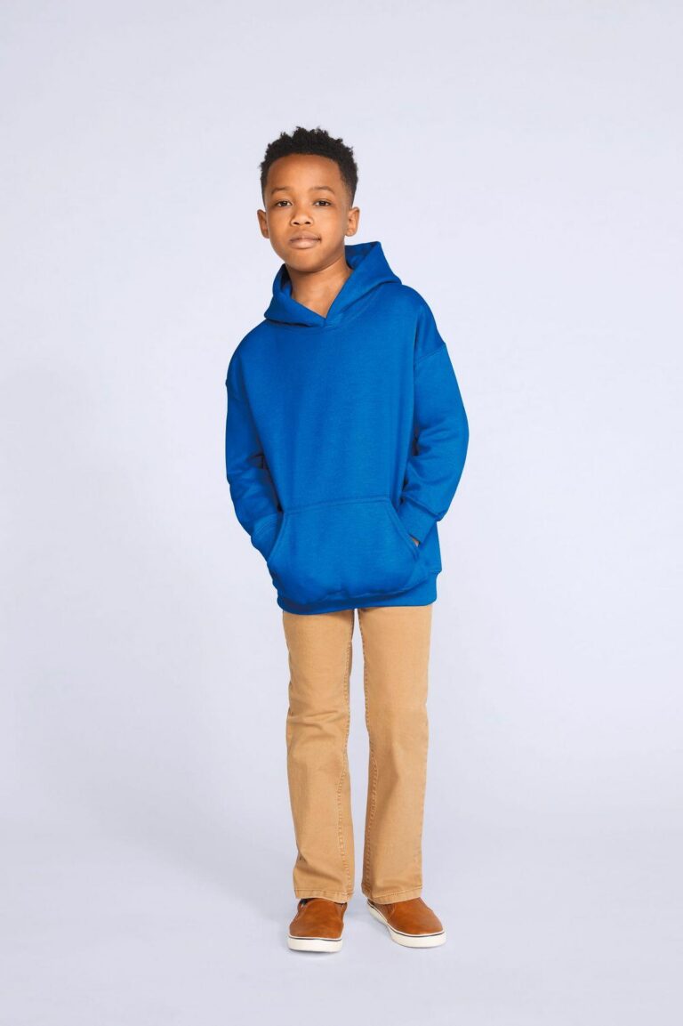 Gildan260 g/mÂČ - 50% Coton / 50% PolyesterBlackDark HeatherForest GreenGoldGraphite HeatherHeliconiaIrish GreenLight PinkMAROONNavyRedRoyal BlueSport GreyWhite9 GI18500B – Sweat-shirt enfant capuche Heavy Blend⹀ 14,50 HTVA