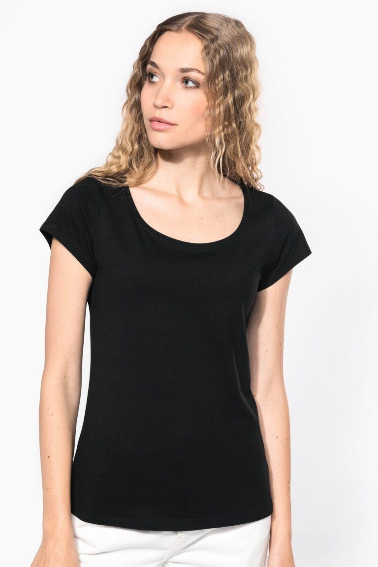 Kariban110 g/m² - 90% Coton / 10% ViscoseK384 – T-shirt col bateau manches courtes femmeBlackFuchsiaLimeNavyRedTropical BlueWhite2 € 6,75 HTVAConfigurer
