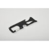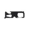 Multi-outil de poche en acier inoxydable. 8 fonctions. Il comprend : une scie à dents, un coupe-fil, une clé, un tournevis cruciforme, un tournevis plat, une règle, un décapsuleur et un porte-clés.