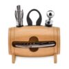 Mini tonneau en bois avec 4 accessoires à vin. Limonadier, bouchon à vin, verseur de vin avec bouchon et coupe capsule.