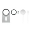 Chargeur sans fil magnétique portable en aluminium de 15W avec support pour téléphone. Comprend un anneau métallique magnétique supplémentaire . Sortie : 9V/1.67A (15W) pour une charge rapide.