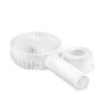 Petit ventilateur portable avec support supplémentaire pour utilisation comme ventilateur de bureau. 3 niveaux de vitesse. Batterie rechargeable 2000 mAh.