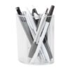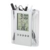 Pot à crayons en plastique transparent avec écran digital et fonctions thermomètre, horloge, alarme et calendrier. Livré avec 1 pile-bouton. Matieres : : Plastique . Nombre et type de piles : : Button cell battery, Pile incluse : Oui.