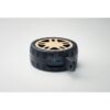 Haut-parleur sans fil 3W 5.3 en forme de roue en ABS recyclé avec détails en bambou et poignée en corde de coton. Batterie rechargeable de 400 mAh.