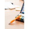 Stylo à bille en plastique avec corps transparent, grip de couleur assortie et parties chromées brillantes. Encre bleue. Matieres : : Plastique (ABS) , Caoutchouc.