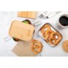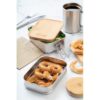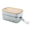 Boîte à lunch en acier inoxydable recyclé avec couvercle en bambou et fermeture sécurisée. Avec 2 compartiments de capacité 340 et 600 ml. Matieres : : Inox recyclé , Bambou . Passe au lave-vaisselle : Oui – sans les accessoires Passe au micro-ondes : Non.