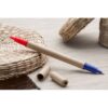 Stylo bille en carton recyclé avec un stylo à chaque embouts. Recharge bleue et rouge. Matieres : : Papier recyclé.