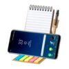 Bloc-notes à spirale recouvert de papier recyclé avec 30 feuilles lignées, 25 notes autocollantes et 125 marque-pages (en 5 couleurs différentes). Avec fonction de support mobile. Comprend un stylo à bille en papier recyclé encre bleue. Matieres : : Papier recyclé , Papier recyclé.