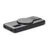 Chargeur sans fil (15W) powerbank (10000 mAh) en ABS avec support magnétique. Entrée : micro B, Type-C. Sortie 2x USB-A In/Output : Type- C. Sortie : DC 9V/1 ,66A (15W) charge rapide.