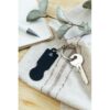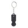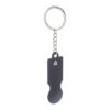 Porte-clés en acier inoxydable recyclé avec finition caoutchoutée et jeton pour chariot de courses. Revêtement spécial pour gravure laser miroir. Matieres : : Inox recyclé.