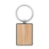 Porte-clés en alliage de zinc de forme rectangulaire avec surface en bambou. Le bambou est un produit naturel, il peut y avoir de légères variations de couleur et de taille par article.