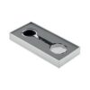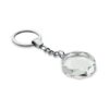 Porte-clés en verre rond biseauté. Présenté dans une boîte cadeau.
