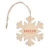 Décoration en bois forme flocon avec corde en jute. Le MDF est un produit naturel, il peut y avoir de légères variations de couleur et de taille par article, pouvant altérer le résultat final.