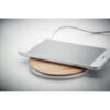 Chargeur sans fil bambou et aluminium. Indicateur de charge bleu. Sortie: DC9V/1.1A (10W). Le bambou est un produit naturel.