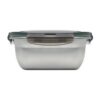 Boîte à lunch en acier inoxydable recyclé avec couvercle en PP et fermeture à fermoir sur 4 côtés. Séparateur inclus. Capacité : 1500 ml.