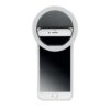 Lampe circulaire 8cm portable pour selfie en ABS avec 28 LED. Lumière blanche réglable sur 3 niveaux de luminosité différents. Batterie USB rechargeable de 80 mAh.