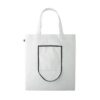 Sac shopping pliable non-tissé sur mesure avec fermeture en velcro, 80g/m2. impression en sublimation totale et labélisé RPET. Quantité minimale : 25 pièces Matieres : : Non-tissé RPET recyclé.