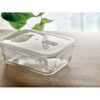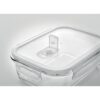 Lunchbox en verre borosilicaté avec couvercle d’étanchéité en PP. Convient aux micro-ondes. Contenance 900 ml.