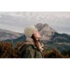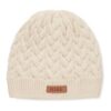 Bonnet tricoté en RPET avec étiquette pour la zone d’impression.
