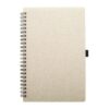 Carnet à spirales recouvert de plastique en paille de blé écologique avec 70 feuilles lignées en papier recyclé et porte-stylo, format A5. Matieres : : Paille de blé , Plastique , Papier recyclé.