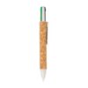 Stylo à bille4 couleurs en plastique écologique en paille de blé avec corps recouvert de liège naturel. Encre : noir, bleu, vert et rouge. Matieres : : Paille de blé , Liège , Plastique.