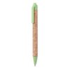 Stylo bille poussoir avec corps en liège et paille de blé (50%) et plastique ABS (50%). Encre bleue. Le liège est un matériau naturel, en raison de sa nature structurelle et de sa porosité de surface, le résultat d’impression final par article peut présenter des écarts.