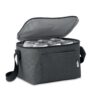 Sac isotherme 2 tons pour 6 canettes en RPET 600D avec poche frontale. Matériau isolant : PEVA 0,15 mm PEVA + 3 mm de mousse.