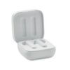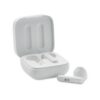 Ecouteurs sans fil ABS True Wireless Stereo (TWS) 5.3 avec microphone et batterie 30 mAh. Durée d’écoute env. 4 h. Batterie à chargement solaire. Appairage automatique. Câble de chargement de type C et chargeur de 200 mAh.