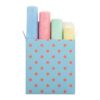 Set de 4 craies de couleur dans une boĂ®te en papier imprimĂ© en quadri. Le prix comprend l’impression numĂ©rique. QuantitĂ© minimale : 100 pièces. Matieres : : Papier.