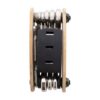 Outil multifonction en acier inoxydable avec manche en bambou et 14 fonctions. Comprend des tournevis plats et cruciformes, 5 clés Allen, 3 douilles pour clés Allen avec tige d’extension et 4 clés plates. Matieres : : Acier inoxydable , Bambou.