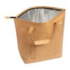Sac isotherme zippé en papier recyclé laminé doublé en aluminium et anses courtes. Matieres : : Papier recyclé , Aluminium.
