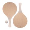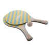 Jeu de tennis de plage sur mesure avec 2 raquettes et une balle. Fabriqué en contreplaqué de bouleau et en plastique de paille de blé écologique. Le prix comprend une impression quadri identique sur une face avant et sur les deux raquettes. Quantité minimale : 50 pièces. Matieres : : Bois , Paille de blé , Plastique.