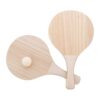 Set de tennis de plage en bois et plastique écologique en paille de blé avec 2 raquettes et une balle. Comprend 3 jeux de société, qui peuvent être joués sur les raquettes. Livré dans une pochette en coton avec cordon de serrage. Matieres : : Bois , Paille de blé , Coton , Plastique.
