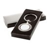 Porte-clés en métal rond avec la partie centrale pivotante dans boîte cadeau noire. Matieres : : Métal.
