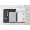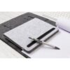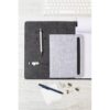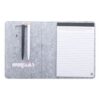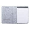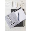 Conférencier en feutrine RPET format A5 avec pochettes avant et plusieurs poches intérieures de rangement. Avec bloc-notes de 20 feuilles lignées en papier recyclé. Matieres : : Feutre en PET recyclé , Papier recyclé.