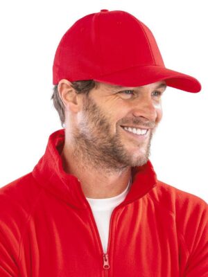 100% coton sergé. Modèle 5 panneaux. Visière préformée. Œillets de ventilation. Taille réglable Rip-Strip™.
