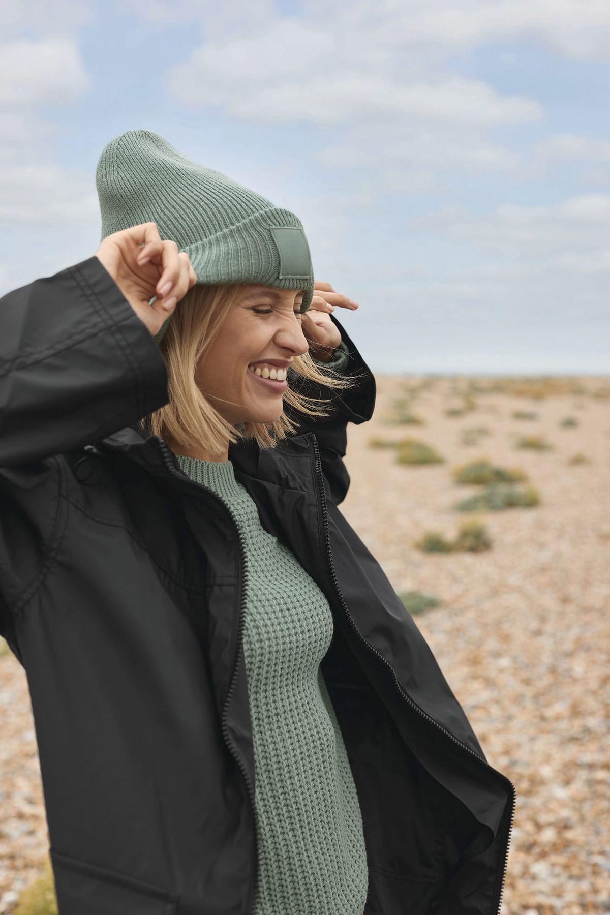 100% Polyester Recyclé. Tricot à mailles. Calotte à pinces invisibles pour un maximum de confort. Patch décoratif en sergé de coton ton sur ton avec revers large pour une décoration optimale.