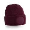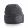 100 % Acrylique doux au toucher. Bonnet avec un patch rond imprimable de 6 cm. Tricot double couche.