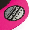 100% coton sergé. 5 panneaux. Visière plate sandwich avec autocollant authentique. Œillets de ventilation contrastés. Ajustable par languette de réglage rétro Snapback. Étiquette détachable.