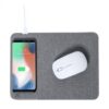 Tapis souris en polyester RPET avec chargeur sans fil intégré (10W) et fonctions de support pour téléphone portable. Livré avec câble chargeur USB. Matieres : : Polyester PET recyclé.