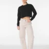 52% coton peigné Ring-Spun / 48% polyester. Sweat-shirt col rond. Coupe courte tendance avec bords francs au bas du vêtement. Coutures latérales. Bord-côte aux poignets.