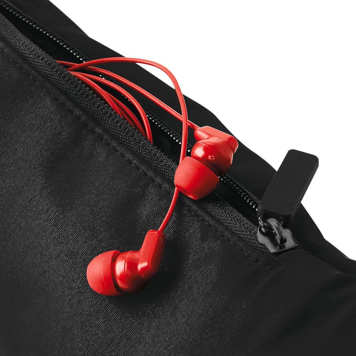 100% polyester. Etiquette détachable. Ceinture ajustable avec fermeture sécurisée. Grand compartiment principal à fermeture zippée. Poche arrière zippée.