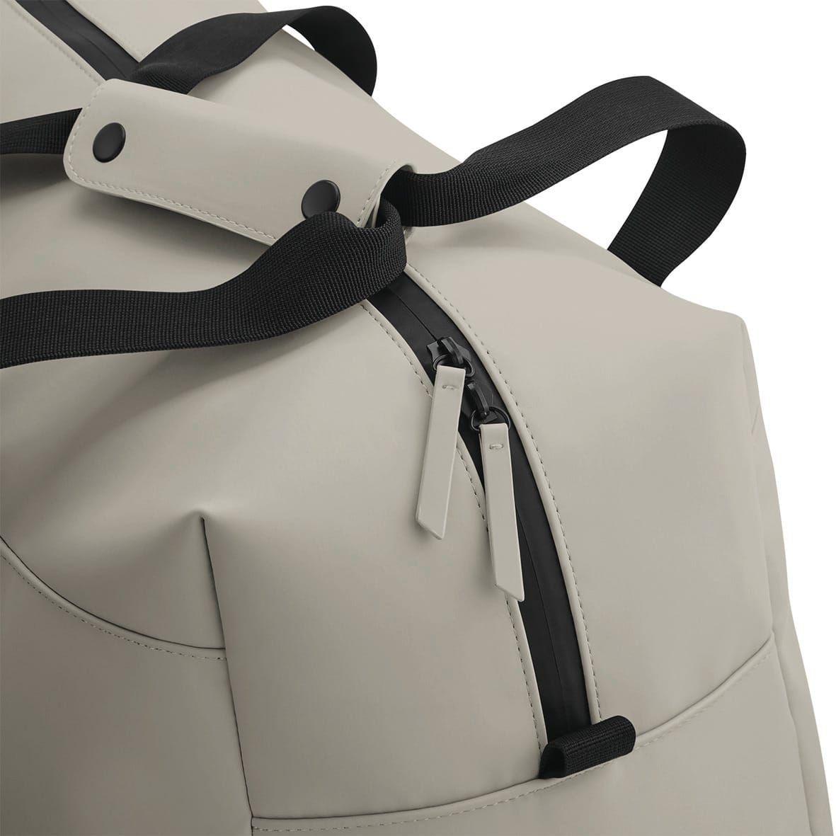 100 % Polyester Recyclé, revêtement polyuréthane mat pans PVC. Sac de voyage en tissu déperlant au style minimaliste. Compartiment principal avec fermeture zippée plus longue pour un accès plus facile. Poche zippée intérieure pour objets de valeur. Base double épaisseur pour plus de durabilité. Poignée en tissu assorti et anses en toile. Peut se porter à la main ou à l’épaule. Étiquette détachable TearAway, facile à ré-étiqueter.