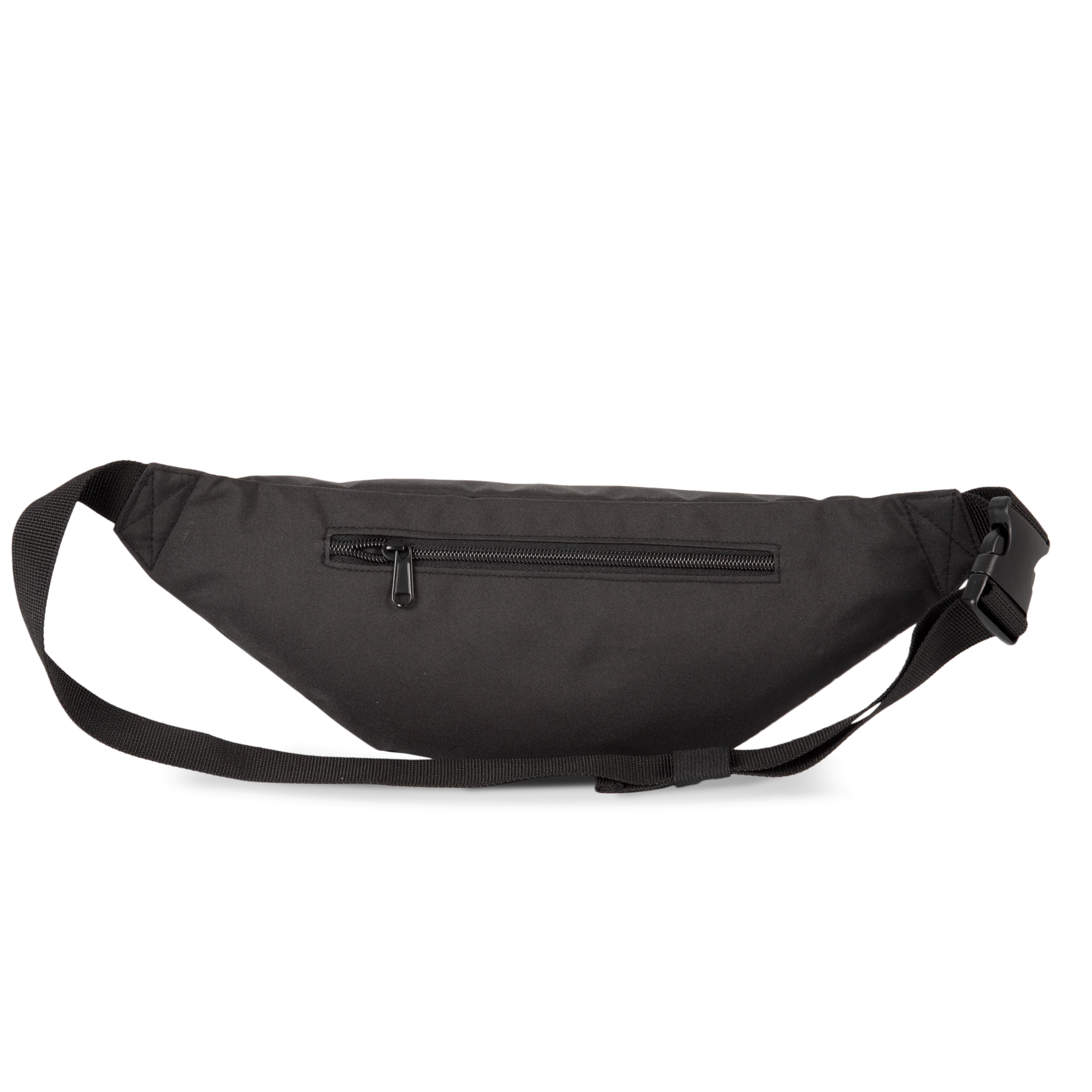 Polyester 600D. Ceinture ajustable avec fermeture sécurisée. Poche arrière zippée. Grand compartiment principal à fermeture zippée.