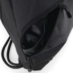 Combinaison de polyester 600D/420D, compartiment principal spacieux, étiquette détachable tearaway, cordons de serrage épais, oeillets de ventilation en métal, compartiment pour chaussures, tissu imperméable, porte-bouteille.