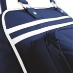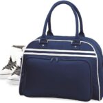 600D polyester. Style rétro. Poche frontale zippée. Poche interne zippée. Poches internes en maille filet. Renfort interne du fond. Pieds en caoutchouc. Peut se porter à la main ou à l’épaule.