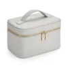 100% simili cuir en Polyuréthane, cuir saffiano au grain fin. Trousse de toilette multi-usage. Compartiment principal et poche interne avec fermeture zippée, poche étui interne et doublure au toucher doux. Fermeture zippée en métal doré brillant, poignée faite du même tissu. Étiquette détachable TearAway, facile à ré-étiqueter.