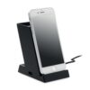Chargeur sans fil 15W Ă  double bobine avec porte-stylo en ABS. Sortie : 9V/1.67A (15W) pour une charge rapide. 1 sortie d’alimentation sur port USB-A.